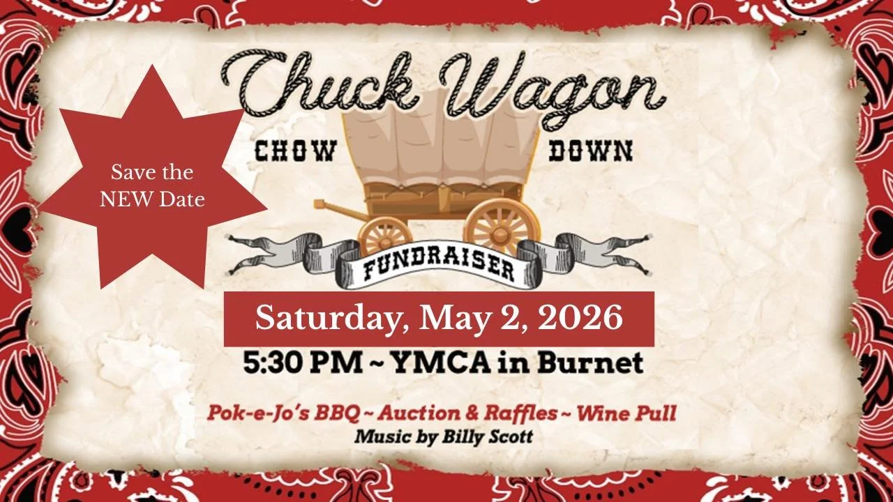Due to the inclement weather forecast and for the safety of our attendees, the Chuck Wagon Chow Down has been postponed until Saturday, May 2, 2026. Please mark this date on your calendar. All Silent Auction bids and Chuck Wagon Chance purchases will remain in the system. Buy It Now gift cards will be delivered to purchasers. Bidding will reopen 10 days prior to the event. All donations will remain in the system. Tickets and table purchases will be honored for the Saturday, May 2, 2026 event. We look forward to seeing you there. Thanks for your continued support of our mission.