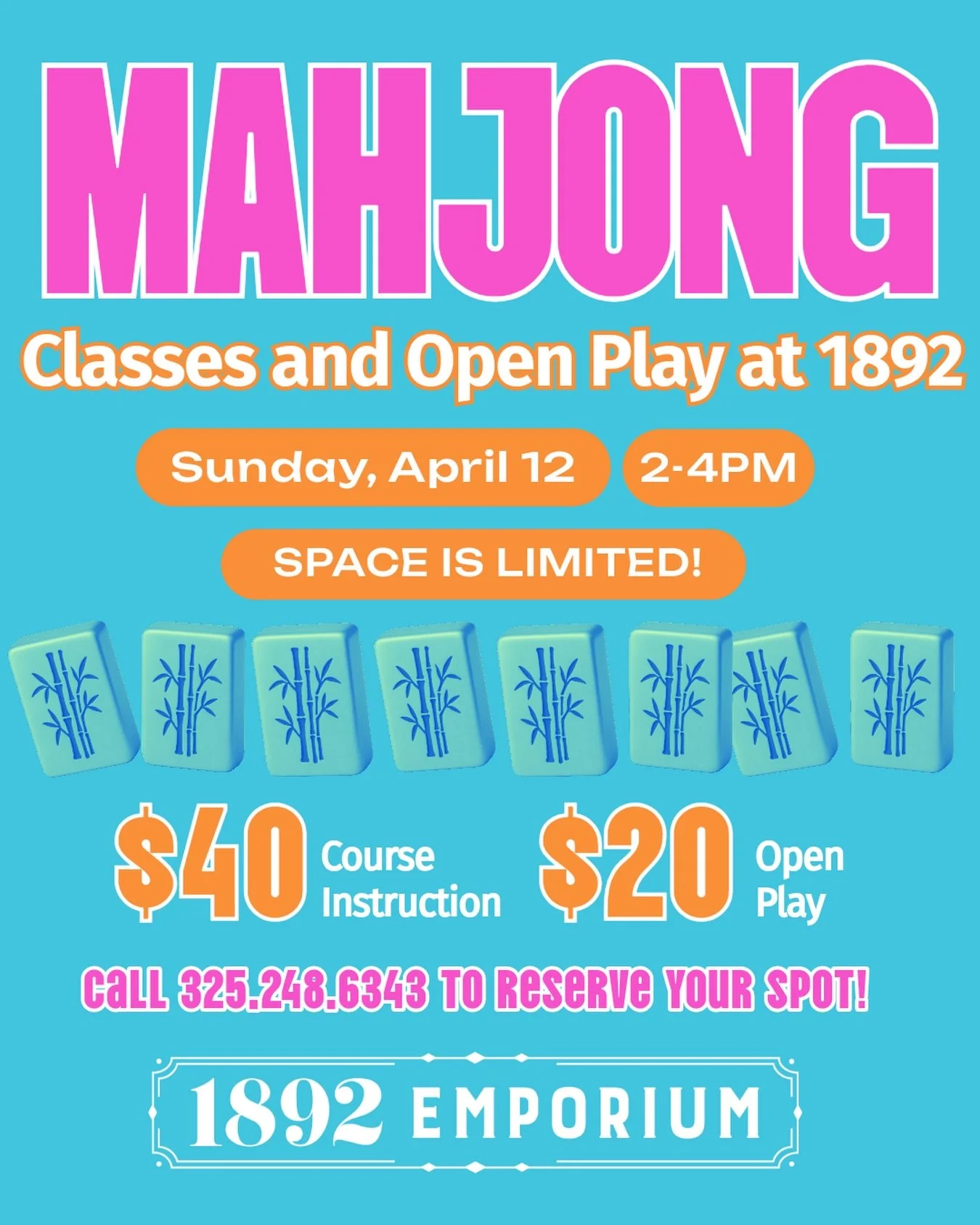 Whether you’re learning for the first time or ready for open play, join us for an afternoon of tiles, strategy, and a little friendly competition. Spots are limited, so be sure to reserve yours early.