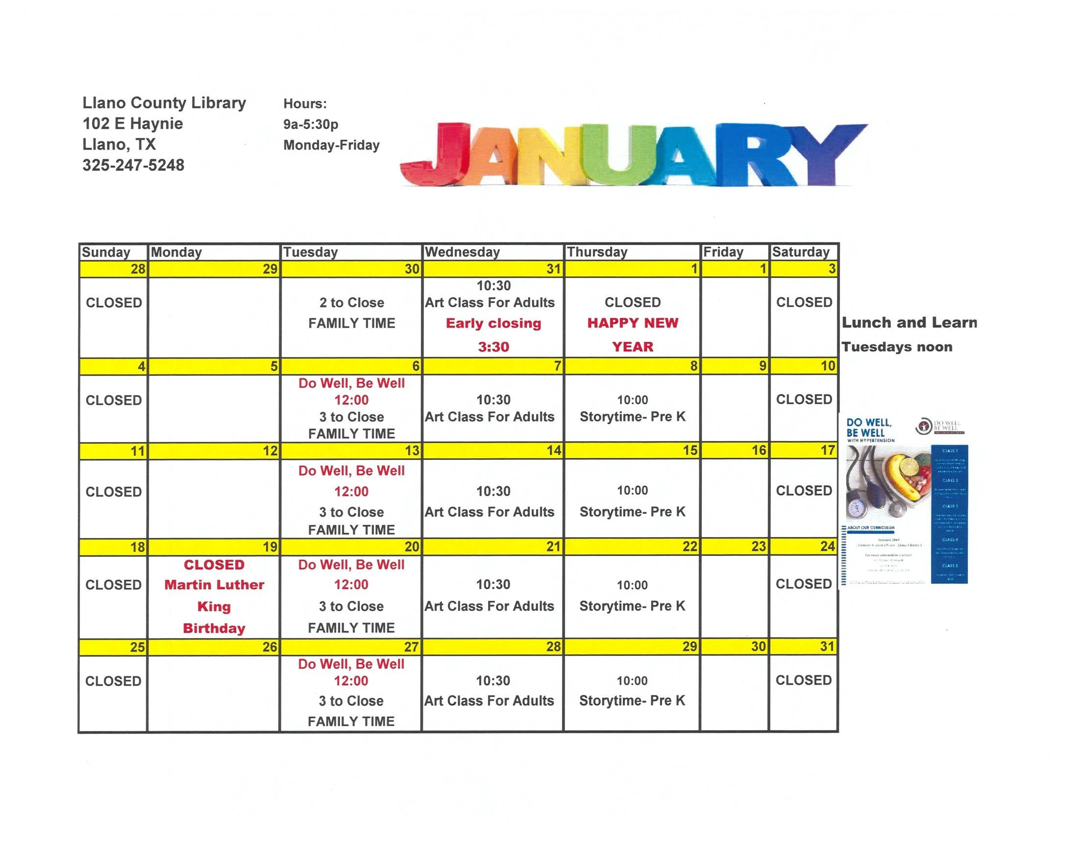 Art Classes for Adults at Llano Library Wednesday, January 14, 2026 10:30 AM 11:30 AM Llano Library 102 East Haynie Street Llano, TX, 78643 United States (map) Google Calendar ICS Llano Library