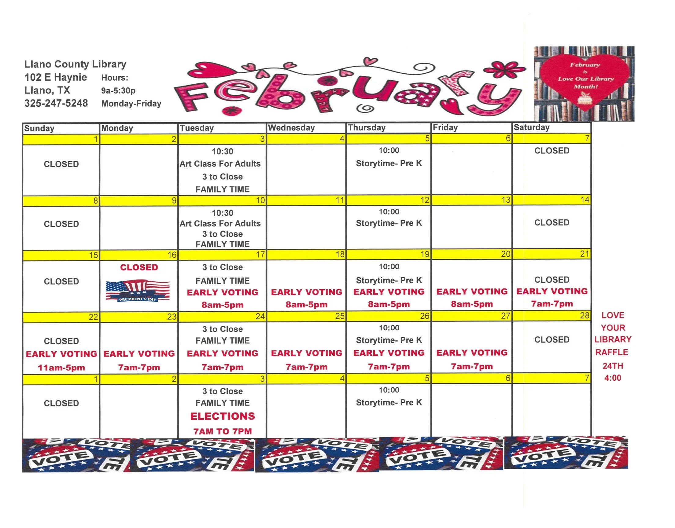 Storytime- Pre K at Llano Library Thursday, February 5, 2026 10:00 AM 11:00 AM Llano Library 102 East Haynie Street Llano, TX, 78643 United States (map) Google Calendar ICS Llano Library