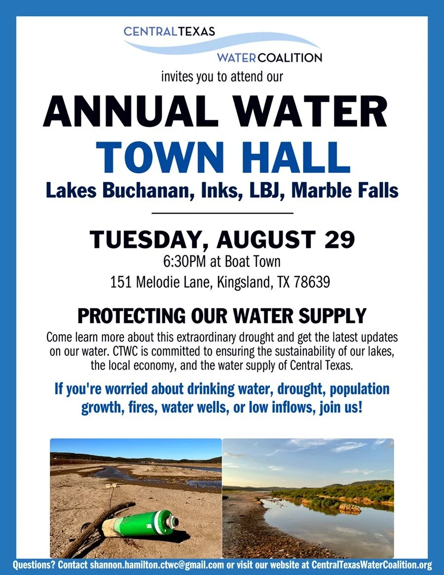 Annual Water Town Hall Tuesday, August 29, 2023 6:30 PM 8:00 PM Boat Town 151 Melodie Lane Kingsland, TX, 78639 United States (map) Google Calendar ICS