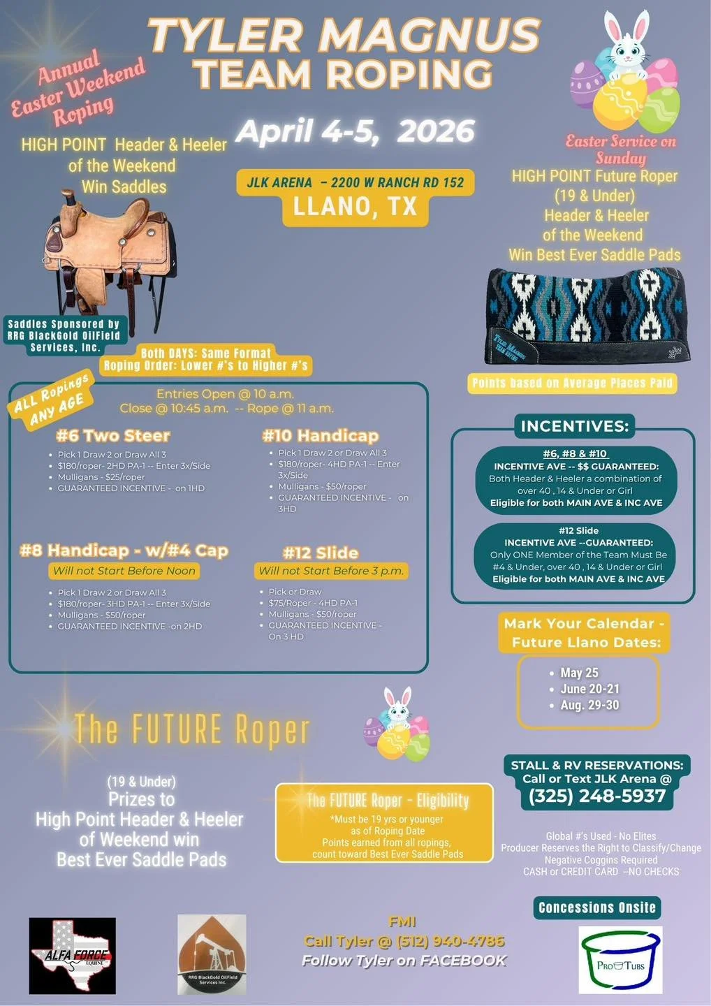 Tyler Magnus Team Roping at the JLK Arena Saturday, April 4, 2026 10:00 AM Sunday, April 5, 2026 4:00 PM John L Kuykendall Events Center & Arena 2200 West Ranch Road 152 Llano, TX, 78643 United States (map) Google Calendar ICS John L Kuykendall