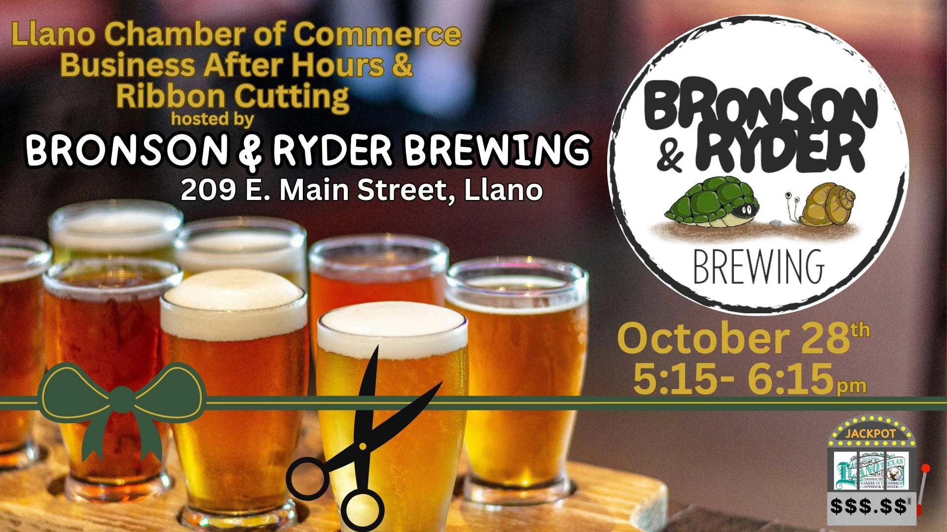 You're invited to our Llano Chamber of Commerce Business After Hours and Ribbon Cutting hosted by Bronson & Ryder Brewing at